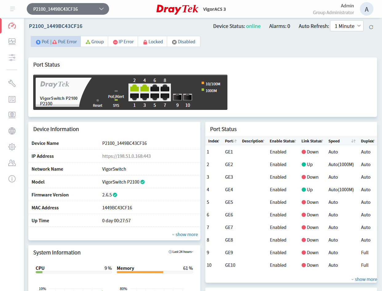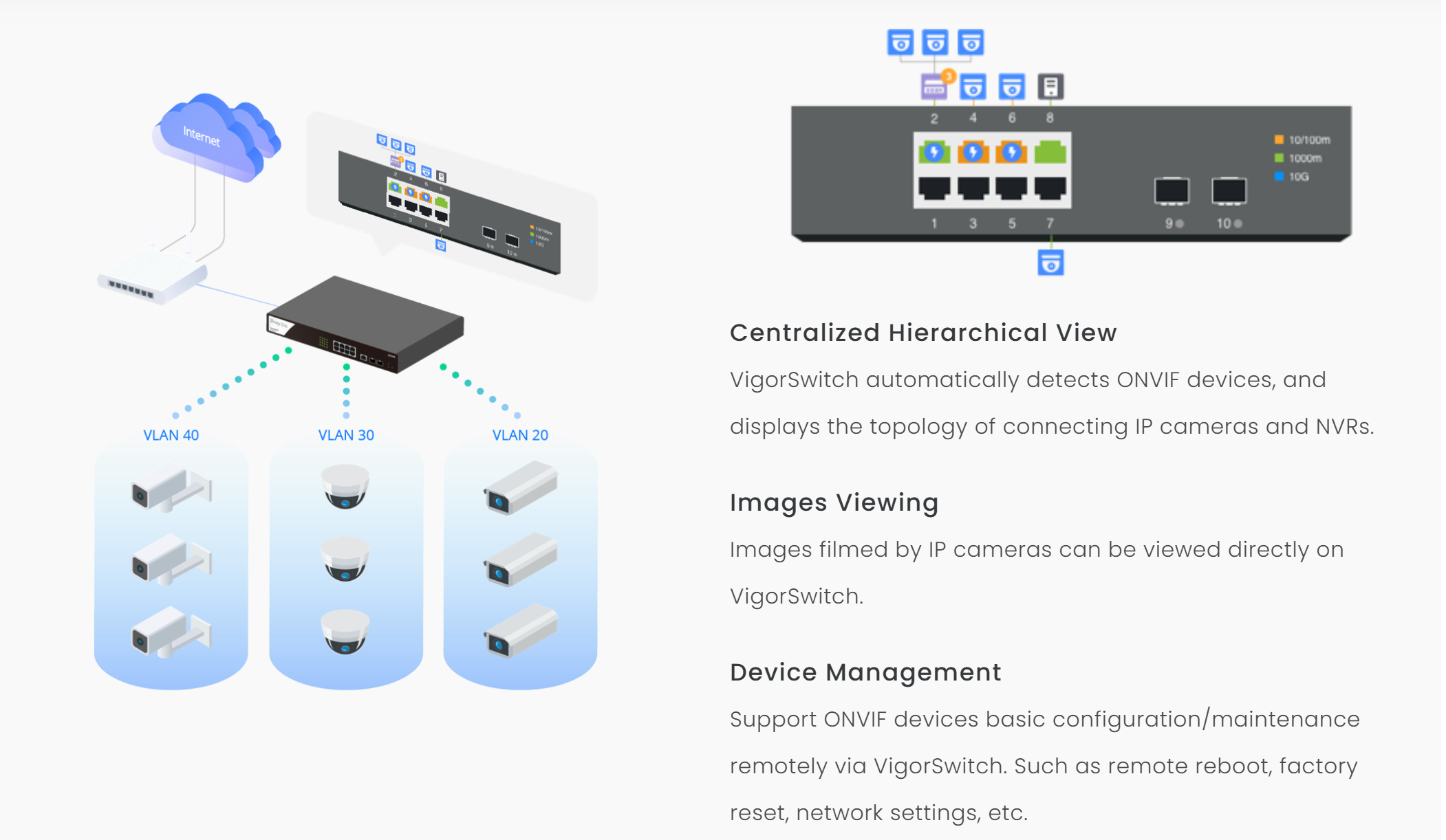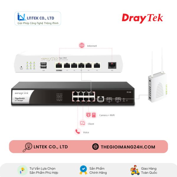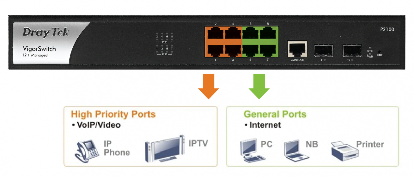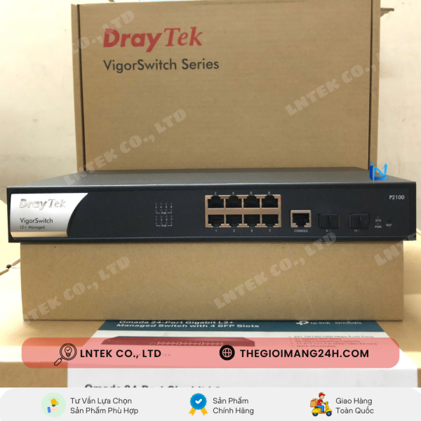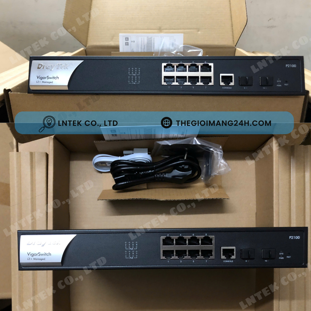Trang chủ » Sản phẩm » DrayTek VigorSwitch P2100 Managed Switch Layer 2+, 8 port Gigabit PoE, 2 slot SFP Uplink, nguồn PoE 140W