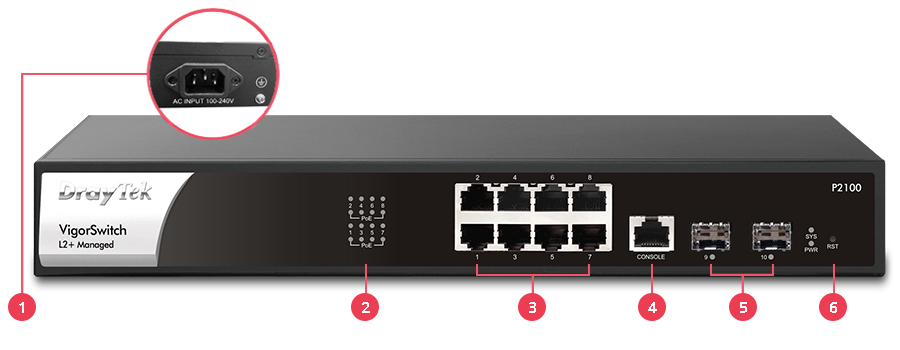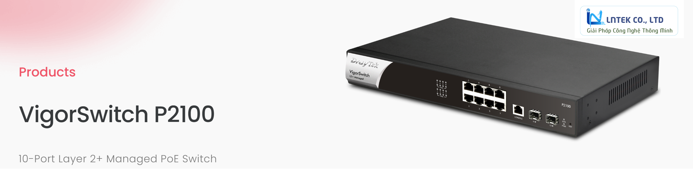 DrayTek VigorSwitch P2100 Managed Switch Layer 2+, 8 port Gigabit PoE, 2 slot SFP Uplink, nguồn PoE 140W