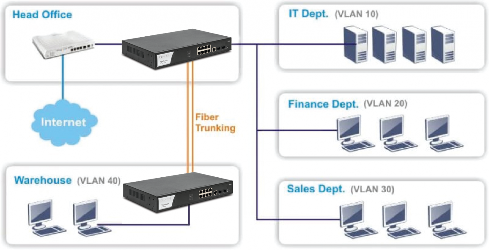 – Hỗ trợ chia VLAN 802.1q, Port based VLAN