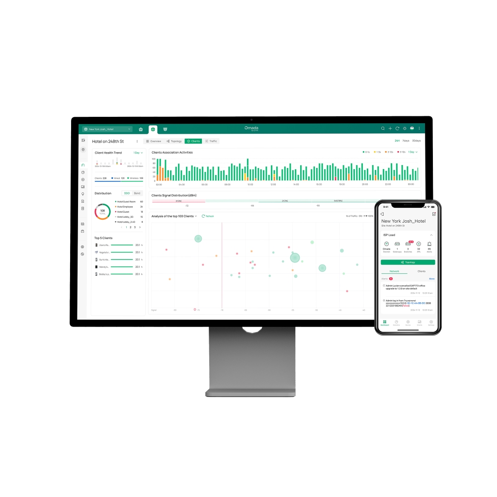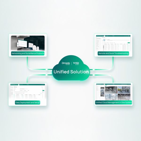 - Quản lý đám mây hợp nhất trong một hệ thống: Quản lý tập trung các điểm truy cập Omada, switch, gateway, camera VIGI, NVR và hệ thống năng lượng mặt trời qua ứng dụng hoặc web.