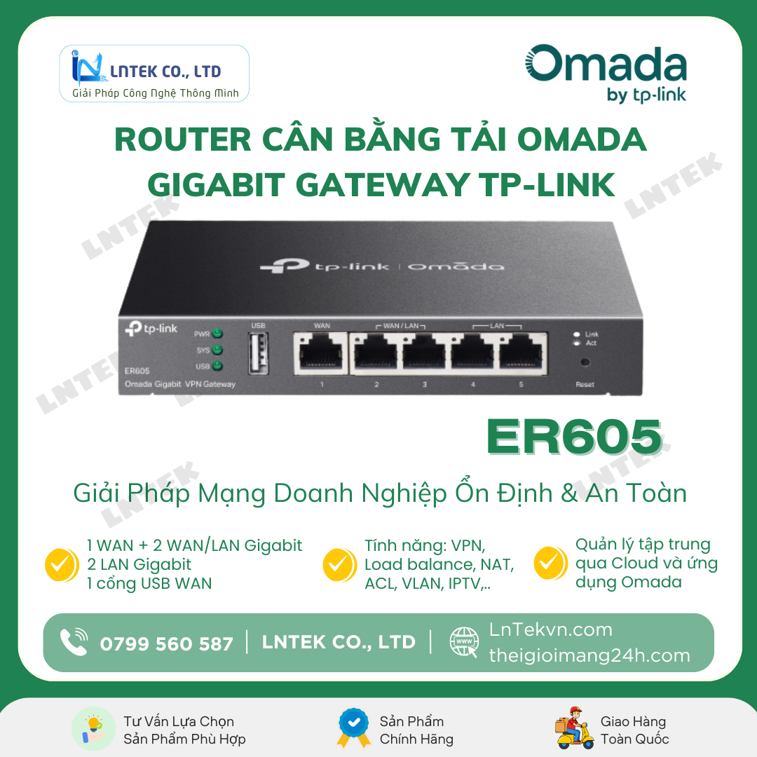 Quý khách nếu đang quan tâm hoặc có thắc mắc về sản phẩm Router TP-Link Omada ER605 chính hãng, xin vui lòng liên hệ với chúng tôi qua Hotline: 0799 560 587 hoặc qua Emai: kinhdoanh.lntek@gmail.com để được hỗ trợ tốt nhất.